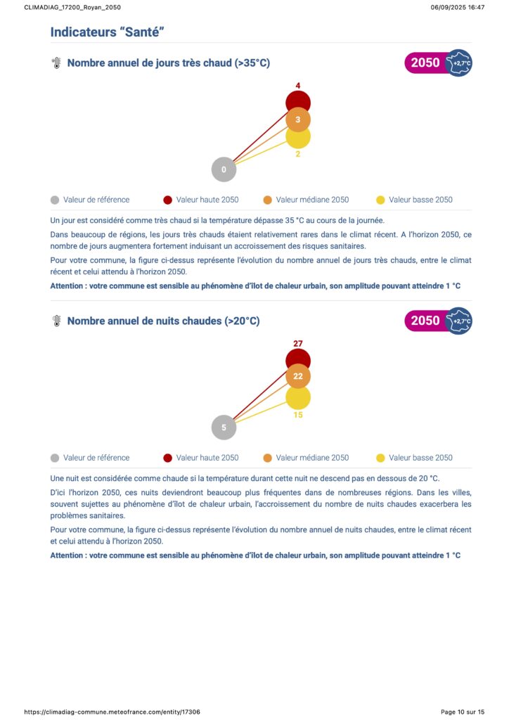 Le risque sécheresse est bien connu également, eu égard au nombre d’arrêtés catastrophe naturelle le concernant, 10 par exemple à Royan sur les 21 pris depuis 1982 (les autres sont la submersion marine – 4 – et l’inondation, 7). Un risque qui va exploser avec l’allongement du nombre de jours secs : ils pourraient représenter entre 50 % et 80 % de l’année à l’orée du prochain siècle ! Les argiles et les personnes fragiles accuseront le coup.