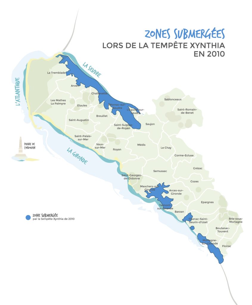 Le territoire de la CARA est concerné par des risques évidents. Coincé entre deux estuaires (la Gironde et la Seudre) et l’océan atlantique, il est largement soumis au risque inondation. Celui des rivières (en particulier à Saujon), celui de la mer (notamment les communes situées au nord et au sud-est du territoire, les tempêtes Martin en 1999 et Xynthia en 2010 n’ont pas été oubliées), celui du ruissellement (partout où l’artificialisation empêche la libre circulation de l’eau et son absorption par les sols).